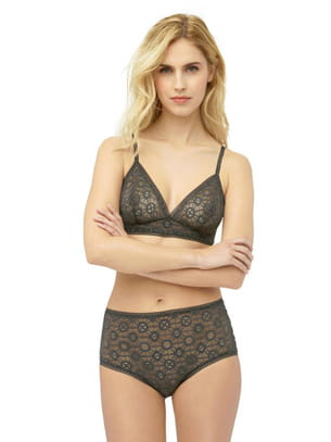 Parure en dentelle grise fumée avec soutien-gorge triangle sans armatures et culotte haute de Eres