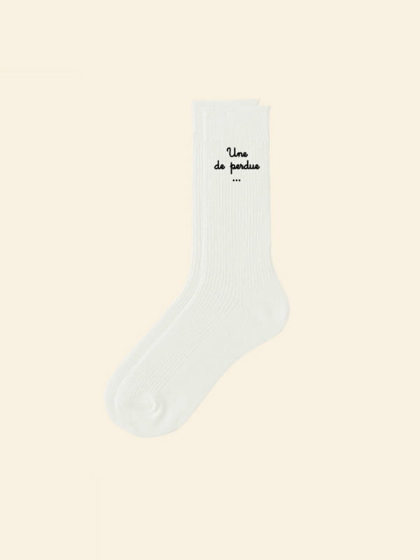 Chausettes blanches mi longues en maille côtelée brode de Rad