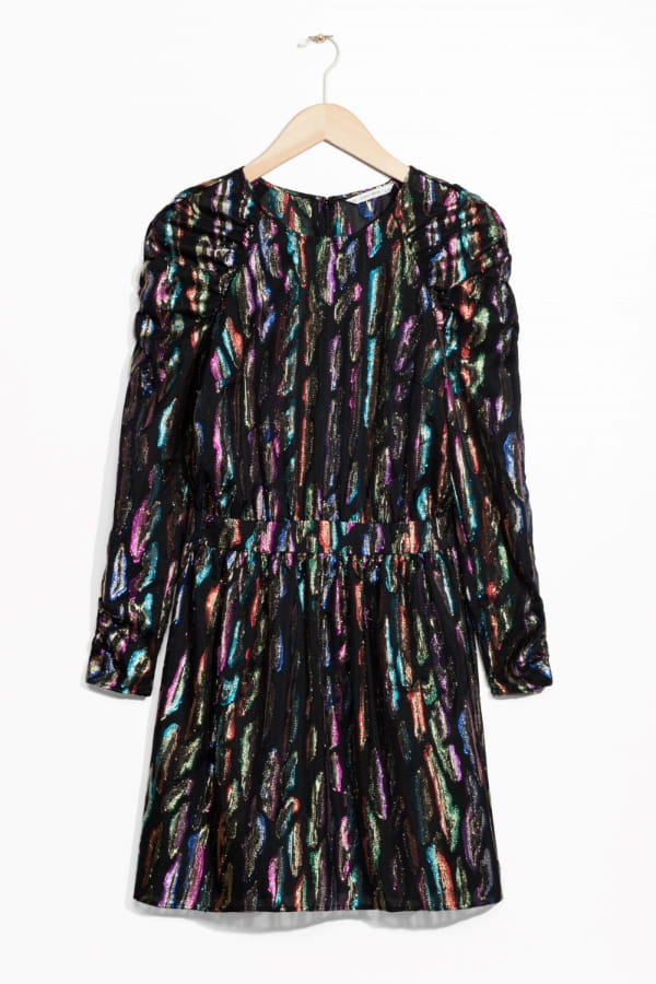 Robe courte à manches longues noire et lamé irridescend de & Other Stories