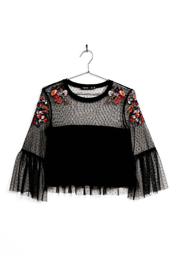 Top noir brodé de Bershka