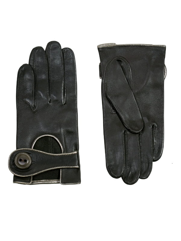 Gants noirs avec liseré doré en agneau et doublés de soie de Maison Fabre