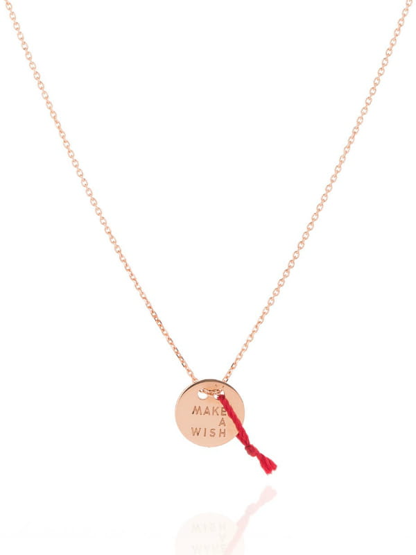 Pendentif porte-bonheur en or rose avec petite médaille à message et mini cordon rouge de Vanrycke