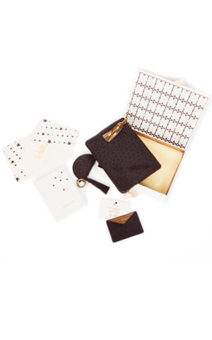Coffret comprenant une pochette en cuir, un porte carte, un porte-monnaie porte-clés et un carnet de Nat & Nin