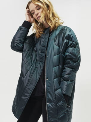 Doudoune vert sapin sans col mi longue forme oeuf de IKKS
