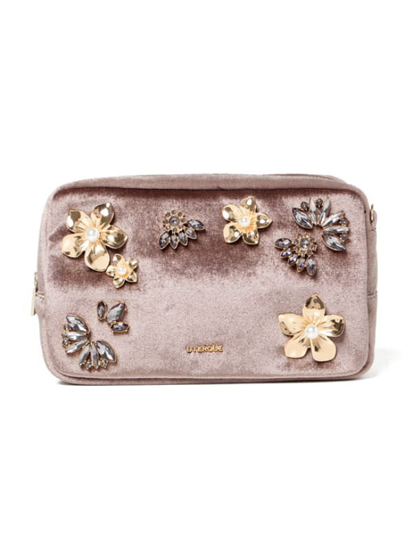 Sac en velours rose fané avec bijoux brodés de Uterque