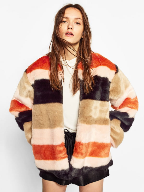 Manteau en fausse fourrure court sans col tricolore de Zara