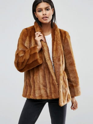 Manteau en fausse fourrure mi long à col châle couleur marron de Asos