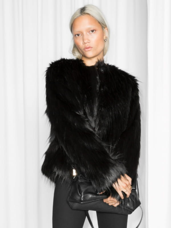 Veste en fausse fourrure courte sans col couleur noir de & Other Stories