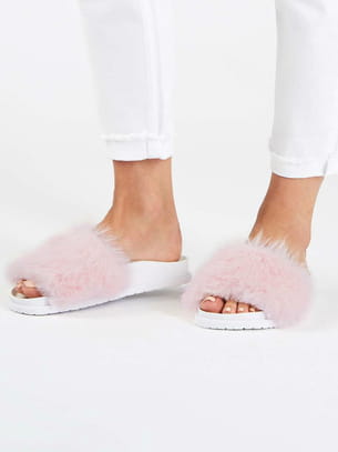 Claquettes en fausse fourrure couleur blanc et rose de Topshop