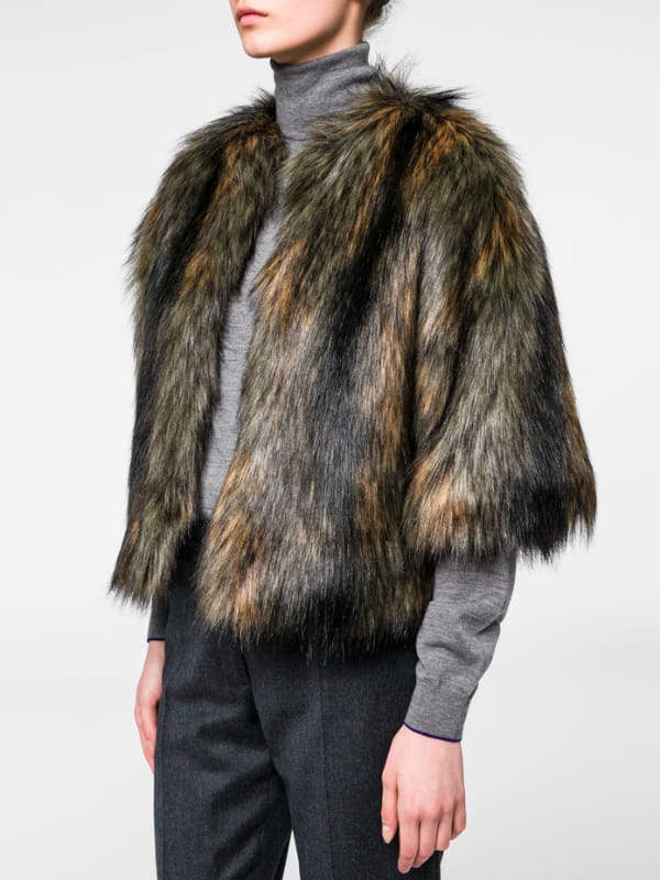 Veste en fausse fourrure courte sans col multicolore de PS by Paul Smith