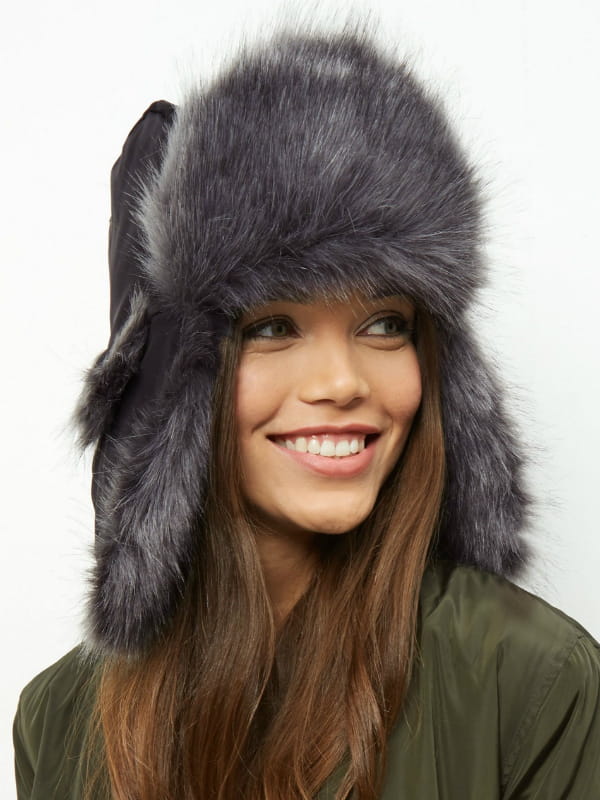 Bonnet façon trappeur en fausse fourrure couleur gris fonc de New Look
