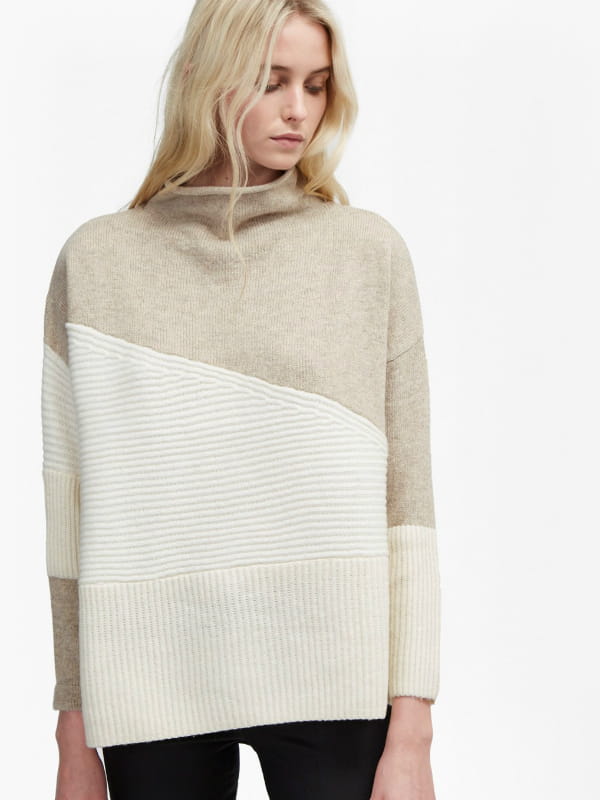 Pull-over blanc en laine côtelée avec empiècement beige et col cheminé de French Connection