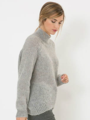 Pull-over gris en alpaga mohair avec col montant de 1.2.3