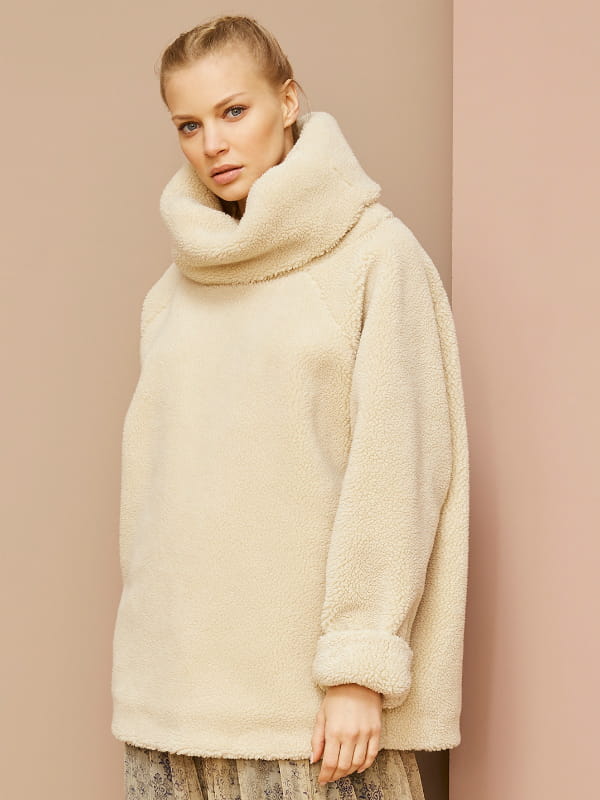 Pull-over crème en molleton à large col de Mes Demoiselles