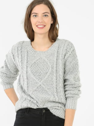 Pull-over gris avec maille torsadée à l'avant de Pimkie