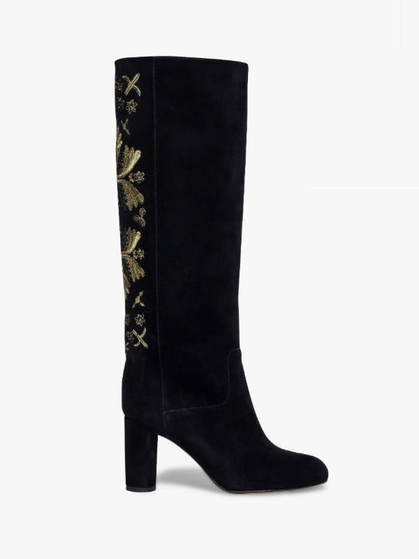 Bottes noires en daim avec broderies dorées à l'arrière de Antik Batik X Bocage