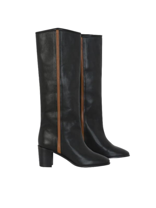 Bottes noires en cuir avec fine bande contrastante marron de Swildens