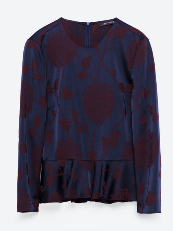 Blouse à manches longues bleu marine et bordeaux à fleurs en brocart de Zara