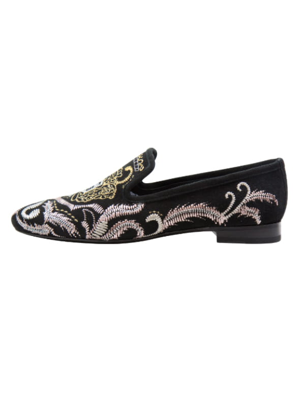 Slip-ons en suède noir brodés de fil or rose de MELVIN & HAMILTON