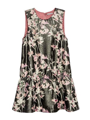 Robe courte cloche en jacquard de soie à fleurs rose pâles de H&M