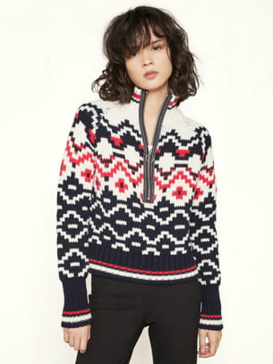 Pull à col montant zippé en maille jacquard tricolore de Maje