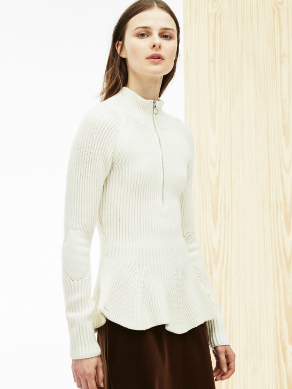Pull à col montant zippé en laine côtelée blanc édition défilé de Lacoste
