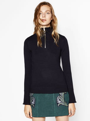 Pull à col montant zippé uni noir de Zara