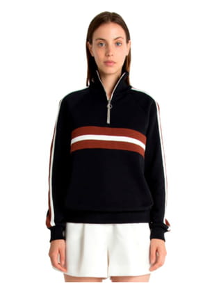Pull à col montant zippé bleu marine à bandes rouge et blanche de Harmony