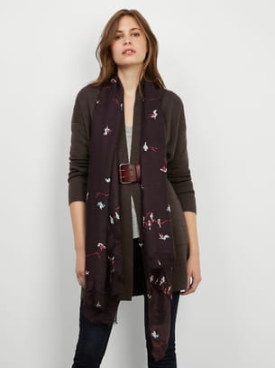 Foulard violet en laine et soie avec oiseaux en imprimé de Comptoir des Cotonniers
