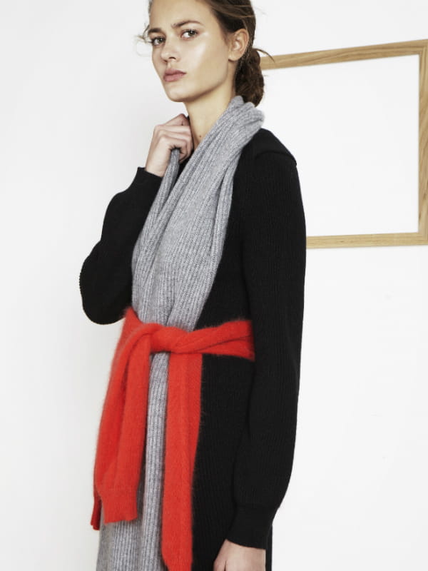 Écharpe grise en cachemire à maille côtelée de Le Mont St Michel