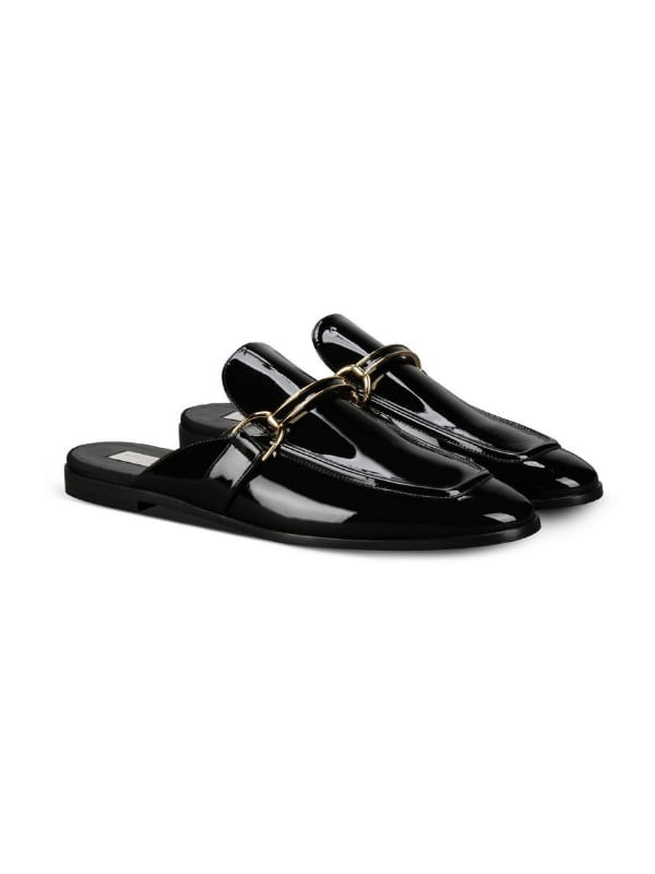 Mules façon moccassins vernis noir ornées de mors dorés de Stella McCartney