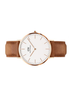 Montre or cadran 40 mm avec bracelet en cuir camel de Daniel Wellington