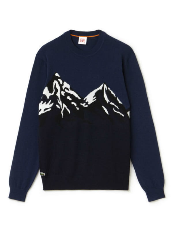 Pull jersey montagne noir blanc et bleu de Lacoste Live