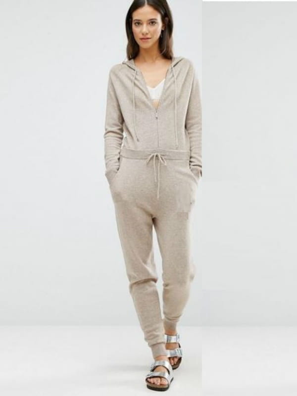 Combinaison pantalon grège en cachemire avec capuche, poches et cordon de serrage à la taille de Les 100 Ciels chez Asos