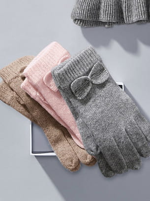 Gants en cachemire avec nœud sur les poignets, disponibles en rose, beige ou gris de Peter Hahn