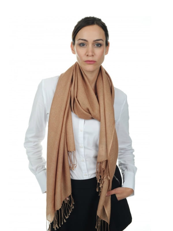 Écharpe camel en cachemire tissée à la main avec franges de Mahogany