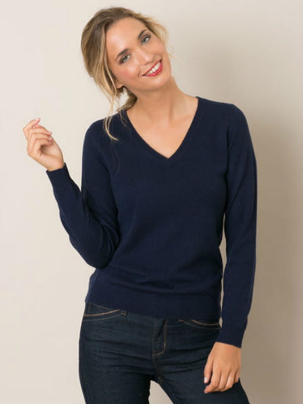 Pull-over marine en cachemire avec décolleté en V de 1.2.3