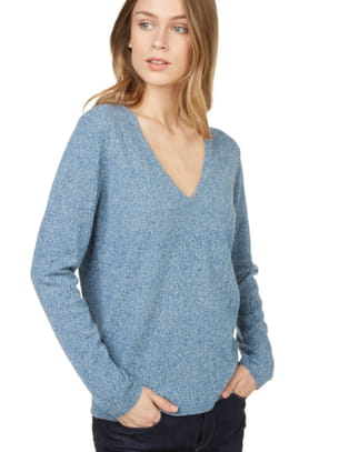 Pull-over bleu en cachemire avec décolleté en V de Monoprix