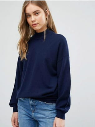 Pull-over bleu marine en cachemire avec col cheminé de Warehouse chez Asos