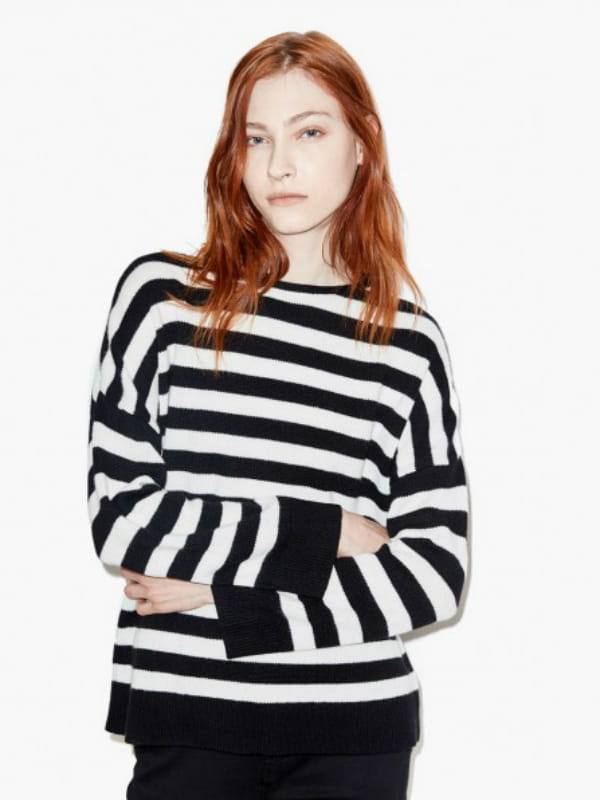 Pull-over blanc et noir en cachemire avec col bateau de The Kooples