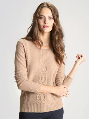 Pull-over camel en cachemire avec torsades sur le devant de Cyrillus
