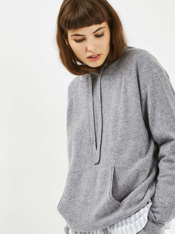 Sweat-shirt gris en cachemire avec capuche et cordon de serrage de Topshop