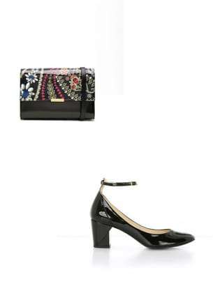 Sac noir en cuir avec imprimé pierre précieuses de Ted Baker et babies noires en cuir verni de Comptoir des Cotonniers