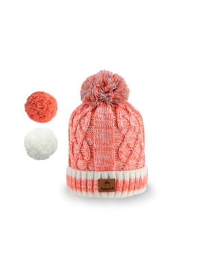 Bonnet blanc et corail en laine avec pompons interchangeables de Cabaïa