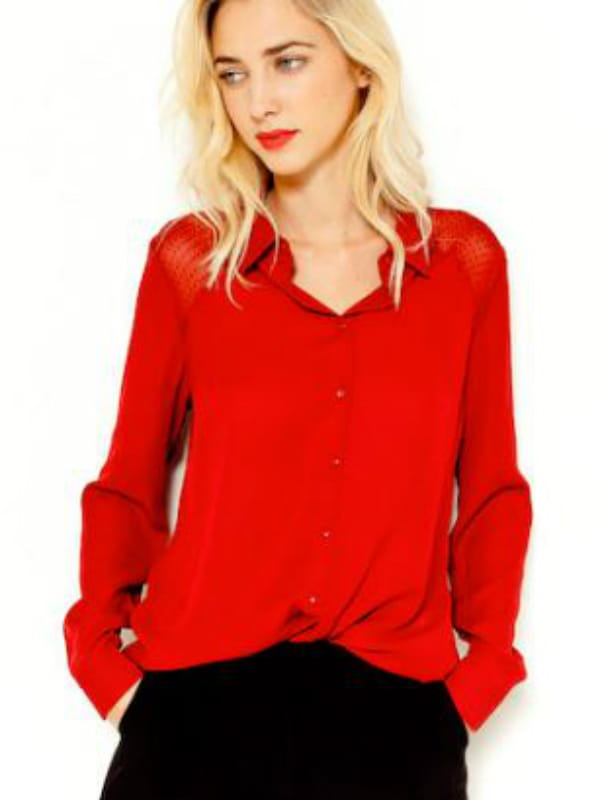 Chemisier rouge vaporeux avec plumetis sur les épaules de Camaïeu