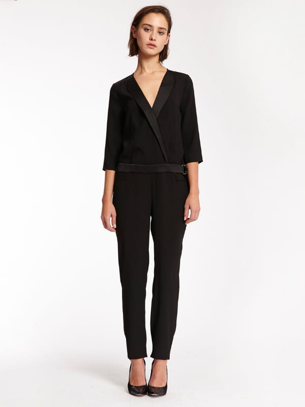 Combinaison pantalon noire en crêpe et satin de Morgan