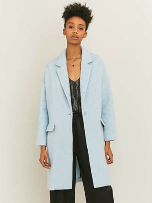 Manteau bleu ciel en feutre épais de Light Before Dark chez Urban Outfitters
