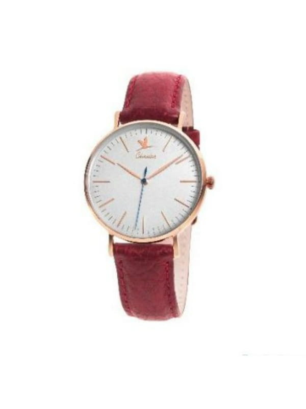 Montre en or rose avec bracelet bordeaux en cuir de Charlie Watch