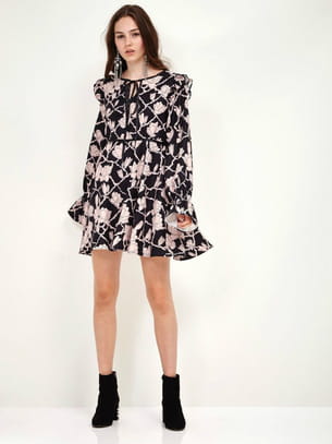 Robe noire en mousseline avec imprimé floral rose de Sister Jane