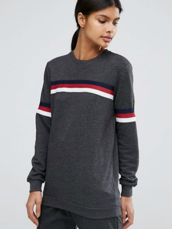 Sweat gris en coton mélangé avec rayures tricolores contrastantes de Asos